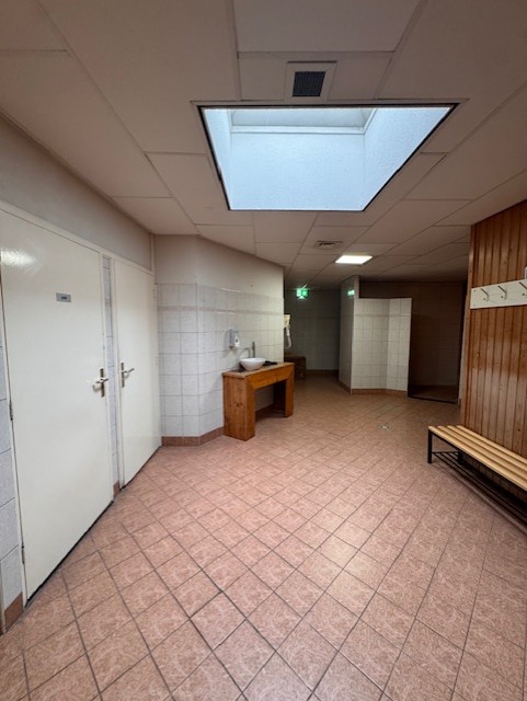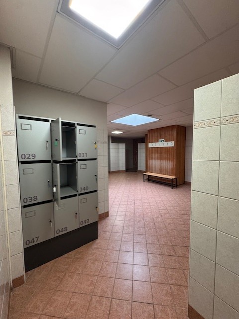 Het pand is ingedeeld met 5 zalen, kleed- en doucheruimtes voor dames en heren, fysio-behandelkamers, kantoorruimtes en een kantine met buitenterras.